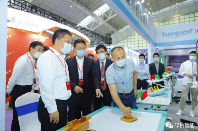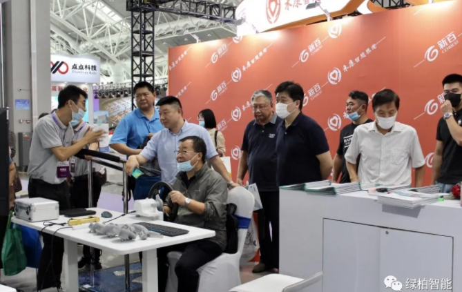02 領導巡館和媒體報道 開幕式結束后,省政府副省長趙世勇等一行領導首先來到綠柏展位蒞臨指導。綠柏公司總經理田開江先生為大家介紹了綠柏智能康復產品的特色功能和在養老方面的應用情況。趙副省長親自體驗了智能OT這款產品,并表示把人工智能和傳統康復相結合是非常創新的典范,也是康復養老未來發展的方向。 展會上,江蘇衛視媒體對田總進行了采訪和報道。采訪中,田總對江蘇衛視記者提出的問題進行了解答,并重點介紹了綠柏公司在康復養老領域的服務理念。田總表示,綠柏會緊跟高質量養老服務的發展理念,未來持續專注于智能養老產品的研發和制造,助力養老產業的發展。 此外,在本次老博會期間,組委會特別在展會現場設置直播間。組委會特邀請田總進行專訪,就綠柏2020年隆重推出的新品:步行反饋自適應康復系統這款產品的功能特色和在康復養老領域的應用進行深入交流。